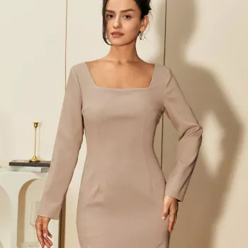AEL Elegant Square Collar Sheath Dress